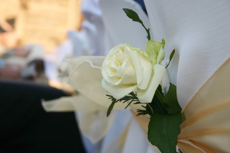 Add a splash of color and style to your chairs with our beautiful sashes. Contact us for color selection.